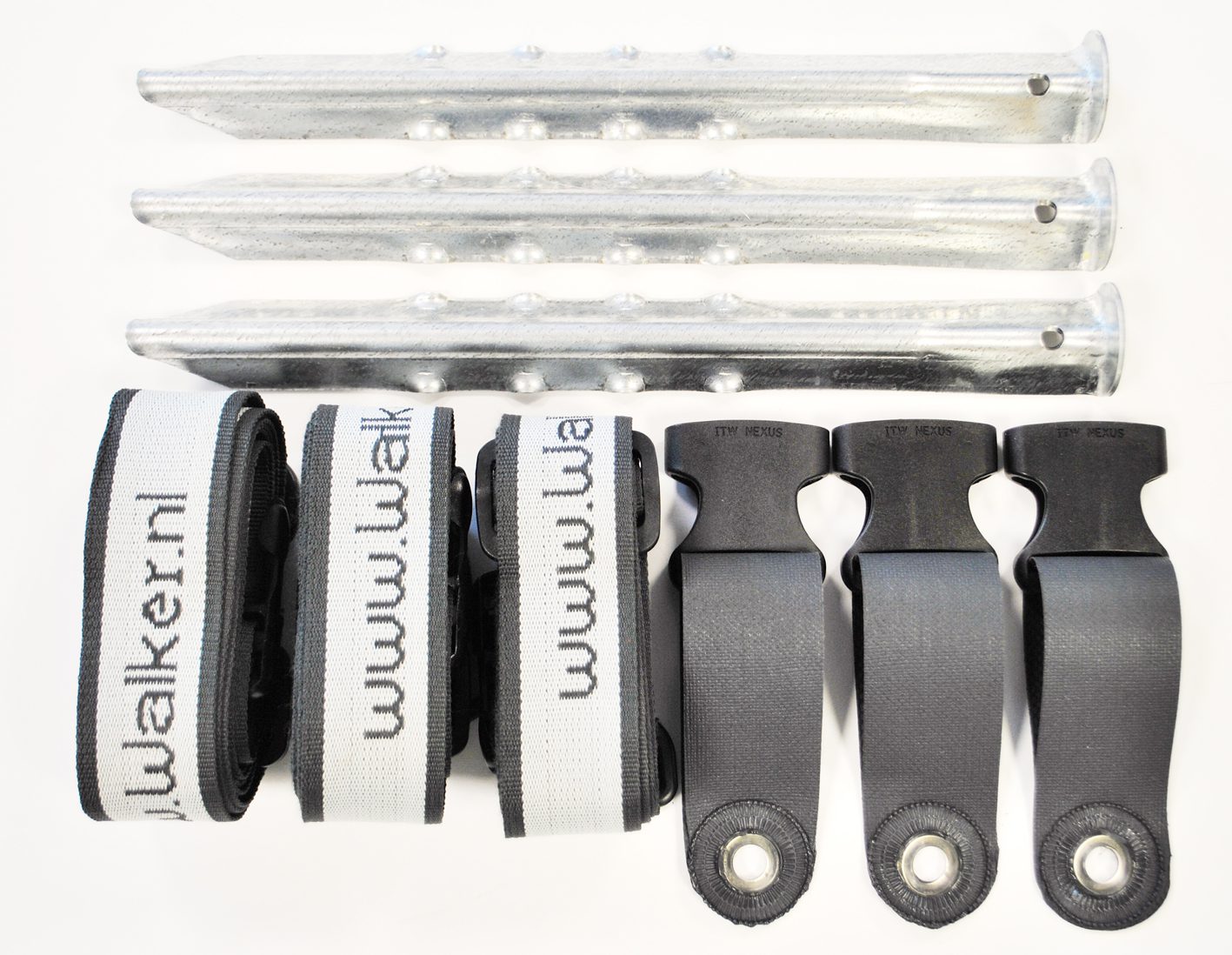 Für alle Walker Vorzelte, das Weekender-Sonnendach und das Patio-Sonnendach sind die Clips für das 2-teilige Sturmband-Set mit Klicksystem bereits montiert. Das 3-teilige Sturmbandset für die Sonnendächer Castel und Patio wird oben auf den Stangenspitzen montiert.